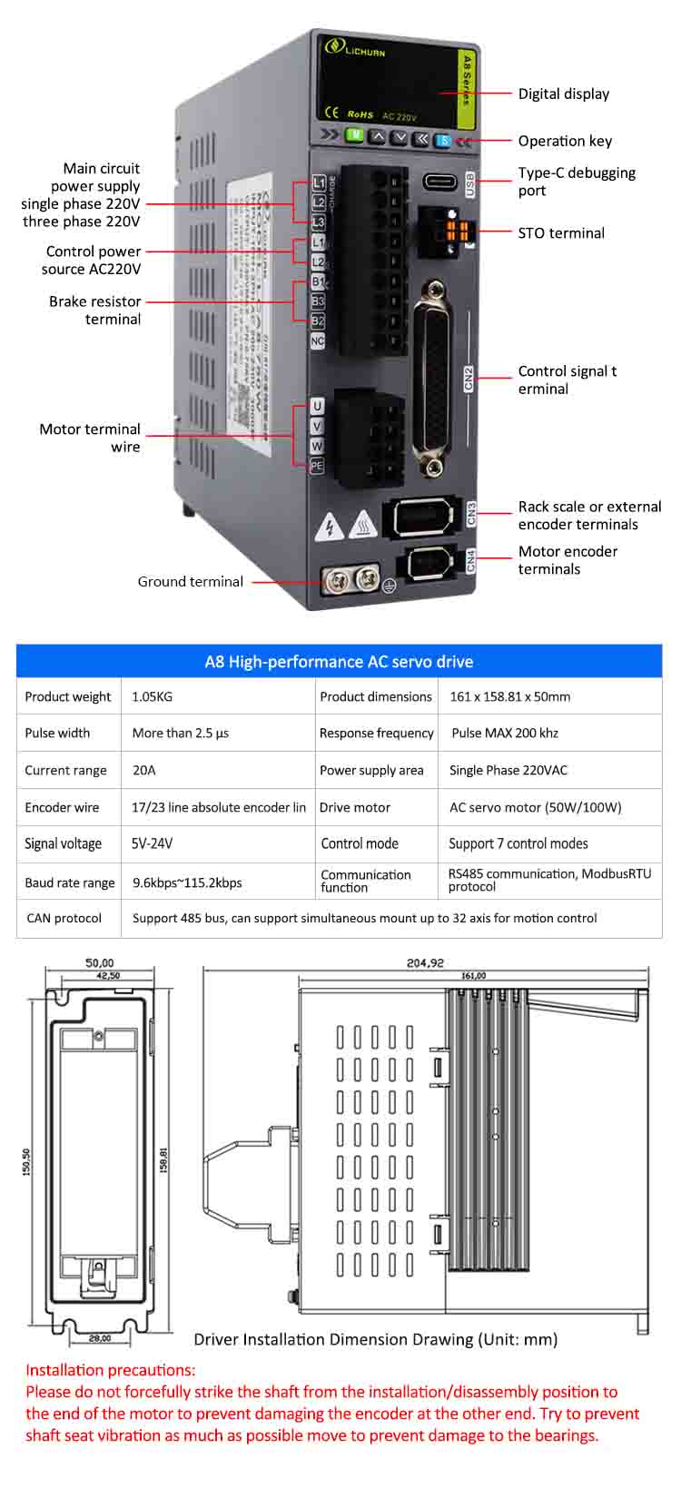 Lichuan A8 serieko Servo Motor Driver abantailak: