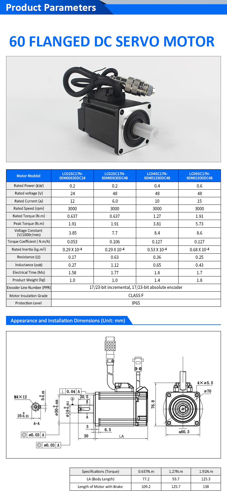 Pulse/RS485/CANopen/EtherCAT 60 FLANGED 400W tentsio baxuko DC Servo Motor Drivers Kit