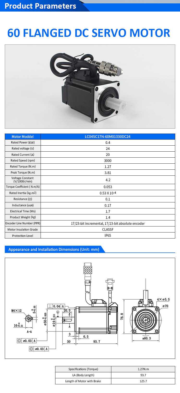 Pulse/RS485/CANopen/EtherCAT 60 FLANGED 200W/400W/600W Tentsio Beheko DC Servo Motor Drivers Kit
